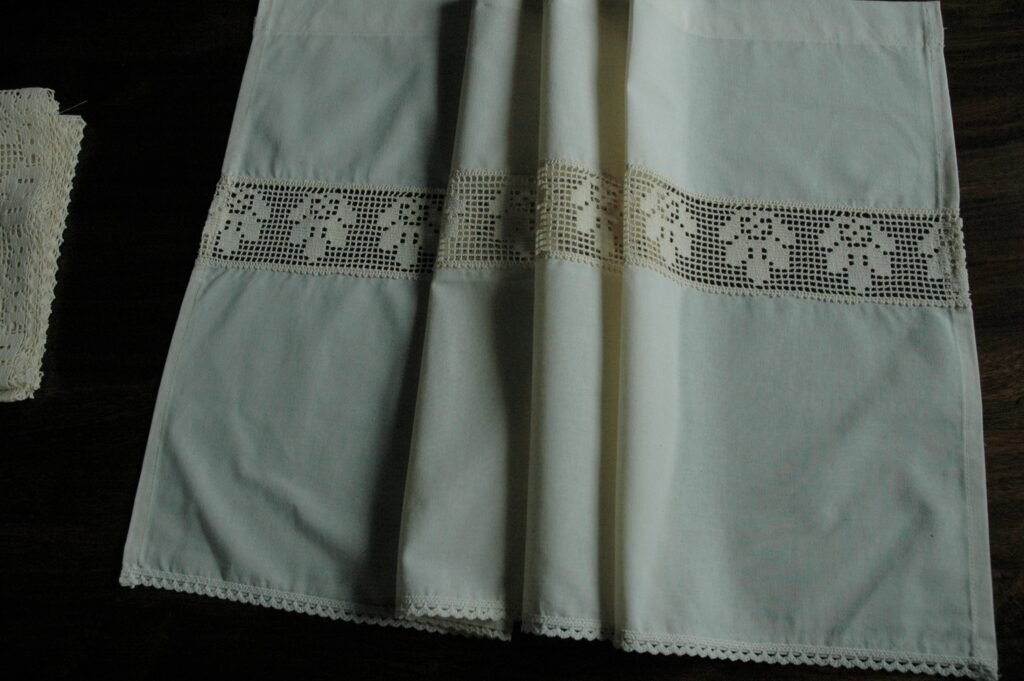 Jakoś mam do niego słabość. Te babcine serwetki, zazdrostki z koronkami, obrusy misternie ręcznie haftowane. Co jakiś czas zastępuje je surowymi lnami, po to, by znów do nich wrócić. Szyć też je bardzo lubię. Właśnie otworzyłam swój mini sklepik na Allegro Lokalnie – Wierzbowisko. Zapraszam 😉