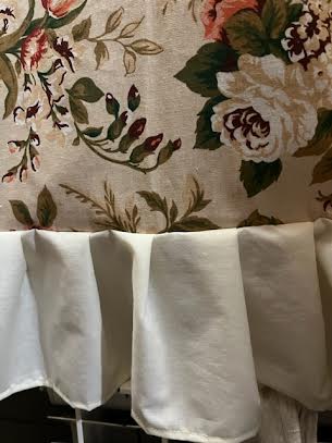 Potrzebowałam koloru w domu. Po lnianych zasłonach, które kochałam przez ostatnie miesiące, postanowiłam, że sprawię sobie jakieś całkiem inne, nowe. A że nie uznaję sztucznych tkanin, len zaś bardzo ostatnimi czasy podrożał, postawiłam na znaną i sprawdzoną polską bawełnę. Zwykle kupuję ją w sklepie Antex (to nie jest reklama), bo nic się z nią nie dzieje, nawet po wielokrotnych praniach. A że z Mazur mam do nich daleko (sklep w stolicy), mam pewność, że zakupy przez internet, w tak delikatnej materii jak tkaniny, będą trafione. No, ale problem w tym, że wzorów i kolorów jest tam tyle, iż można nie tylko godzinami, ale i dniami siedzieć i się zastanawiać. A jak tak długo myśleć nie lubię, więc zamówiłam… różyczki w stylu schabby różowe na białym tle. Piękne, ale jak przyszły, to pomysł jednak uległ zmianie i z różyczek będzie romantyczna pościel, później. Na razie zaś domówiłam cienką bawełnę, taką najprostszą, czyli tzw. pościelówkę – grubą na tyle, że nie prześwituje, cienką na tyle, że jest miękka i łatwo się prasuje. Tym razem tzw. angielskie róże na kremowym tle. No i zakochałam się w nich. Ale takie proste zasłony byłyby zbyt proste. Dodałam więc prościutką falbankę na dole, z bawełnianej surówki. I takie oto zasłony mam za grosik. Małe, tanie, a jak cieszy!