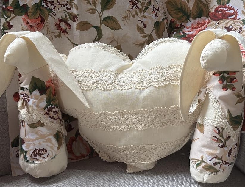 Poducha serce, ma 38 cm szerokości na górze i 30 cm wysokości. Wypchana kulką silikonową antyalergiczną, bo tylko takiego surowca używam do wypychania poduch i maskotek. Można prać w pralce w delikatnym programie, można przeprasować żelazkiem w razie potrzeby.